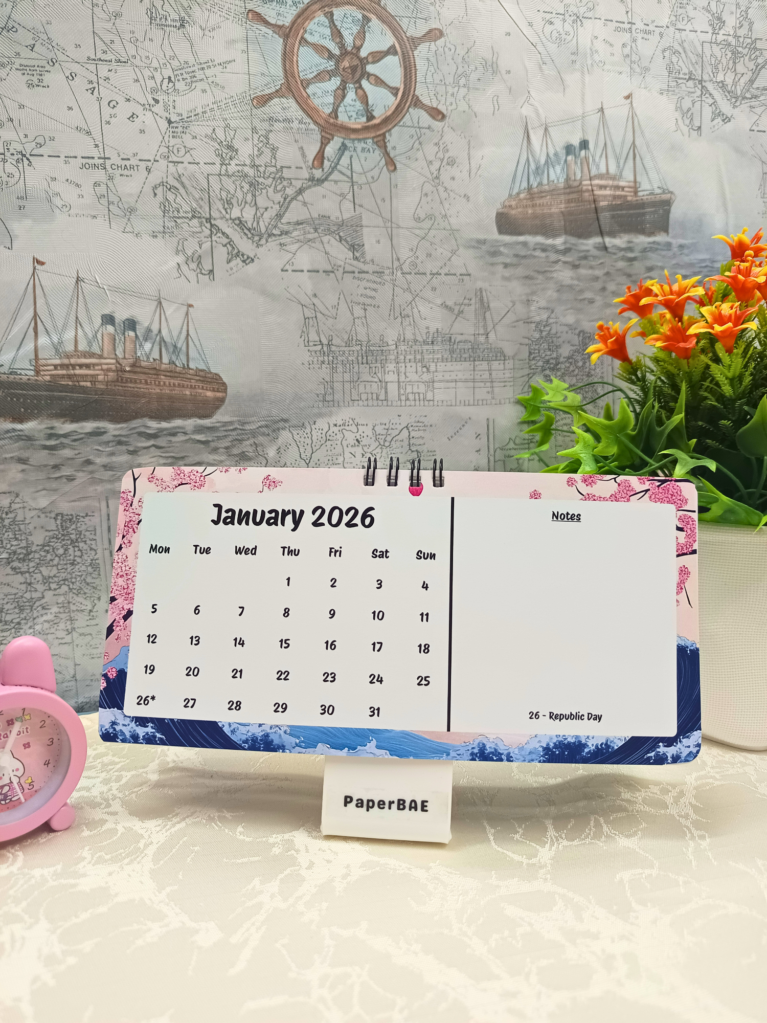 Sakura Waves - 2026 Desk Calendar with Space for Notes
